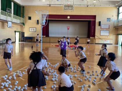 リーダーを中心に回る順番を相談したり、ペアの友だちの様子を気遣ったりする姿が見られました。