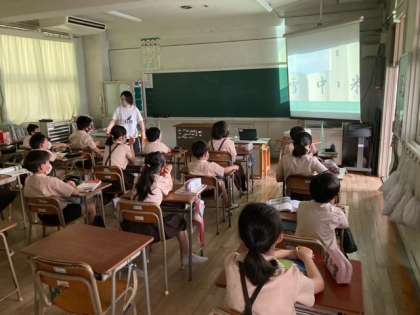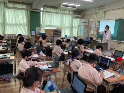 5年生は社会で米のでき方についてVTRを見て理解を深めています。
