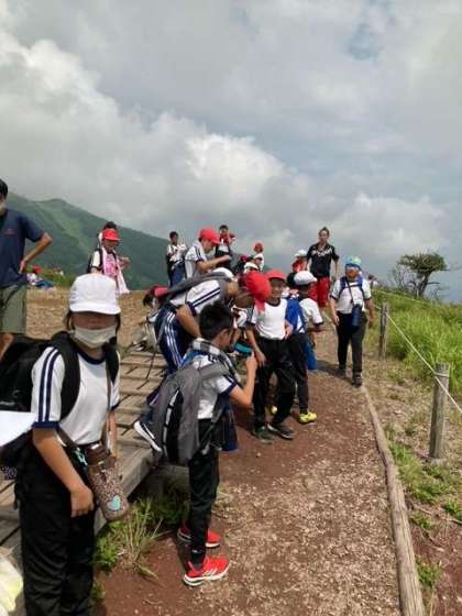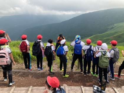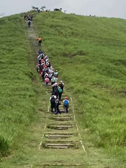 長い階段を歩いて頂上に着きました。みんなで元気よく、「ヤッホー」と声を合わせました。