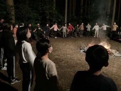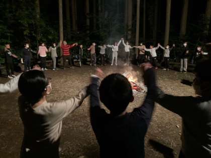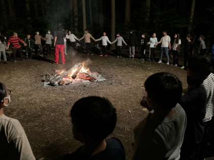 最後の歌を全員が手を繋ぎ、輪になって歌いました。キャンプファイヤーをみんなで盛り上げました。