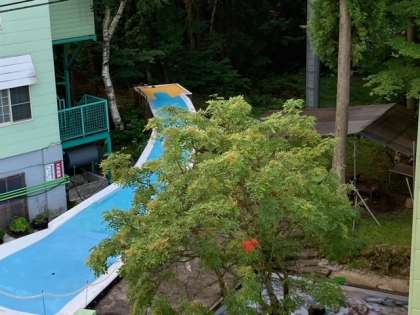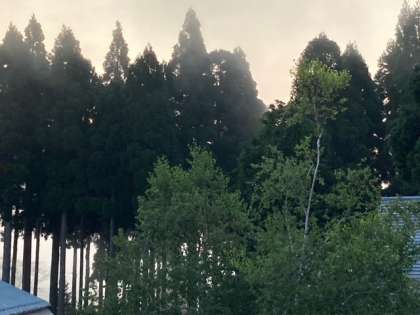 ?早朝の宿舎の部屋には、ヒグラシの鳴き声やカッコウなどの鳥のさえずりが聞こえます。霧も出てきて、自然の朝を感じます。