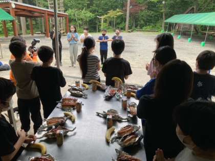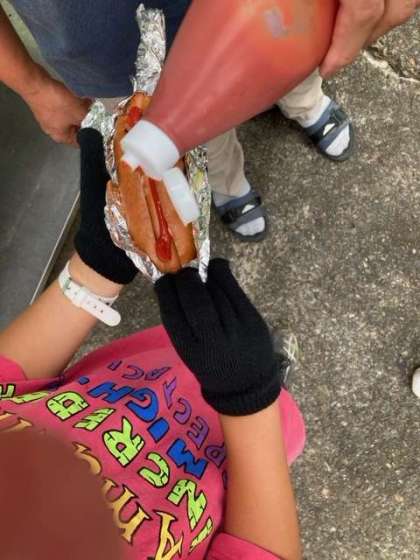 焼きたてホヤホヤのカートンドックにケチャップを付けて食べました。…おいしいです。