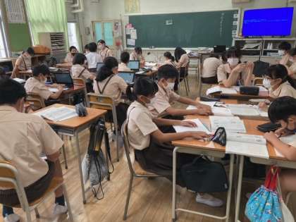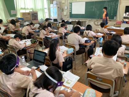 6年生の国語「話し合って考えを深めよう」では、テーマごとにグループを作り、それぞれの立場から考えを伝え合い、聞き手が納得できるような理由を挙げて司会者が話し合いを深めていきます。