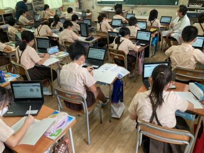 4年生の理科では「月や星の動き」について学習のまとめをしました。タブレットを使って各自でそれぞれに合った内容にチャレンジしています。