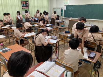 5年生は算数の「倍数、約数」のドリル練習を繰り返してまとめをしました。苦手なところは教え合いながら学習しています。