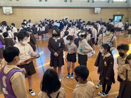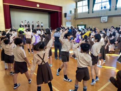 今朝は久しぶりの児童集会がありました。たてわり班で「進化ジャンケン」をしました。ペアの友達と楽しく活動できました。続けて来週のたてわり清掃の確認をしました。明日のオリエンテーリングが楽しみです。
