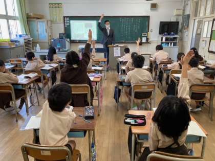 2年生の国語「ビーバーの大工事」では教育センターから指導員の先生が参観され、しっかり音読して文章をまとめることができました。