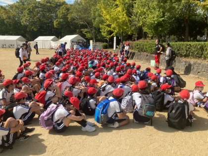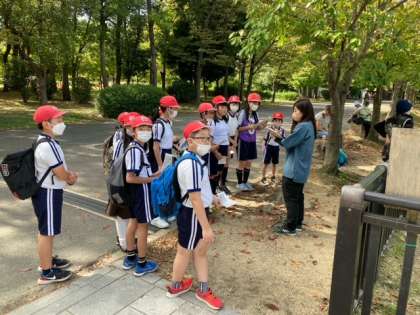 とっても良い天気で元気に出発しました。車中や歩行のマナーを守って、班ごとにスタートしました。
