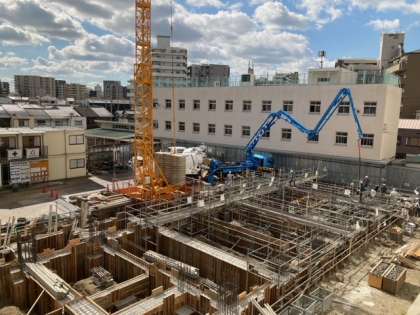 朝からミキサー車がひっきりなしに来て、新校舎の基礎となるコンクリートをどんどん入れています。騒音に負けず、自分のすべき学習や活動を頑張っています。