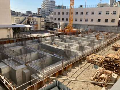 工事は、基礎の土台の形が見えてきました。狭い校内では、廊下の歩行に注意するよう声かけをしています。