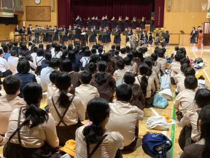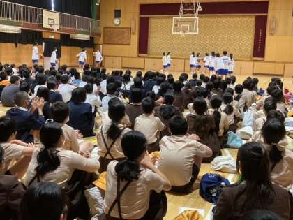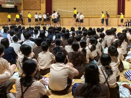 6年生は、歌島中学校に部活動見学に行きました。始めに中学校の先生から後5ヶ月の準備や普段の心構えについてお話がありました。
