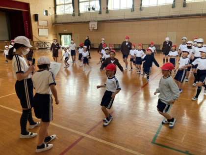 1年生と6年生がペア学年での遊びをしました。「だるまさんが○○した」で鬼役の言った動作をしながら近づいていきます。優しい6年生に1年生は喜んでいました。