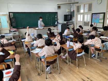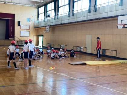 4年生の体育は「走り幅跳び」でマットやロイター板を使って踏み切りのタイミングや遠くに跳ぶ姿勢等を練習しました。