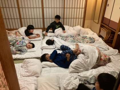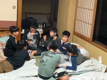今日の活動を全て終えました。友達と過ごす特別な夜にワクワクしますが、明日の6時からの活動に備えて今日の疲れを癒やします。
