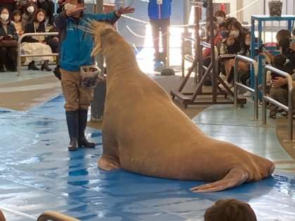 セイウチふれあいタイムでは、目の前に13歳の590kgもあるセイウチを見ました。