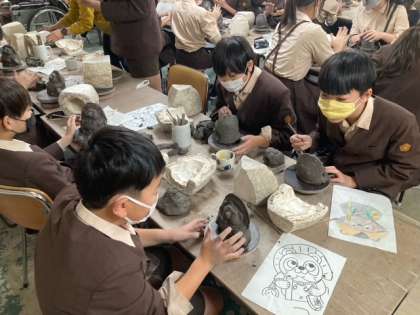 目を入れると表情がでてきます。模様や飾りをつけて世界に一つのタヌキが生まれました。