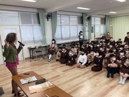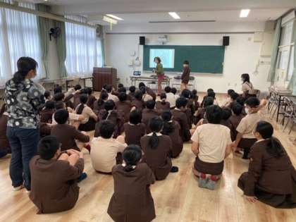 4時間目に6年生は、野里まちづくりを推進する会(ヒクイナ会)の方に野里地域の歴史について、お話を伺いました。