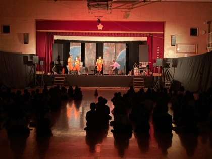 劇鑑賞会は低学年と高学年の二部制で行いました。6名とは思えないほど、迫力のある演技でした。動作や声の張り等、参考になることもたくさんありました。