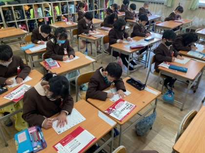 1年生の国語は、2学期最後の漢字テストでした。習った文字が正しく読み書きできるようにおさらいをしましょう。