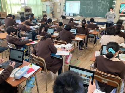 4年生の国語は、自分でお気に入りの料理を調べてリーフレットにまとめています。タブレットを使って新しいメニューを見つけた子どももいます。