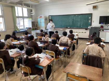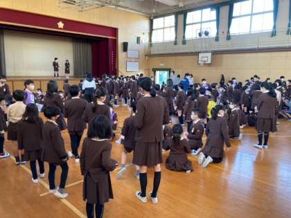今朝は児童集会がありました。なかよし班で久しぶりにクイズをしました。班長が中心となって相談して答えています。