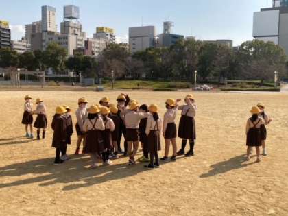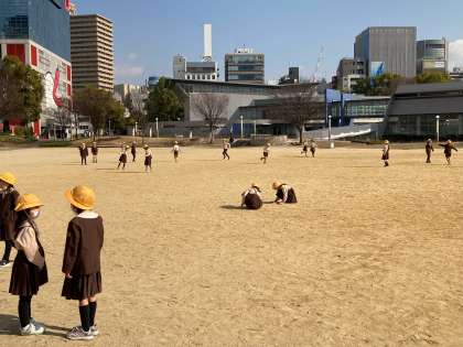 ?気持ちの良い広場で鬼ごっこをしました。とっても広いので走っても走ってもなかなか捕まりません。