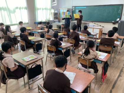 4年生は総合で将来の自分に向けて手紙を書きました。夢に向かって頑張ります。「茶色のこびん」をみんなで歌い、リコーダーで演奏しました。
