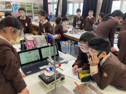 4年生の理科「ものの温まり方」では水を熱した時の変化の様子を詳しく調べました。火を使う実験なので安全に注意しながら細かな変化を見逃さず、記録しました。