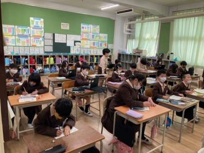 工事は3〜4階の部分まで進んでいます。音は聞こえますが授業には落ち着いて取り組んでいます。