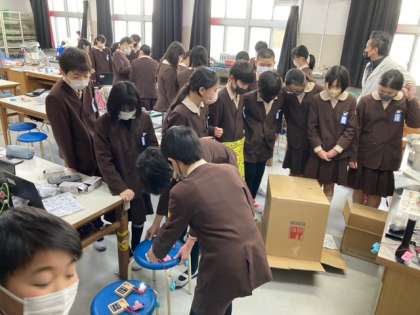6年生の理科では、ブロムラミング教材として「人感センサー」で点灯する回路を作りました。