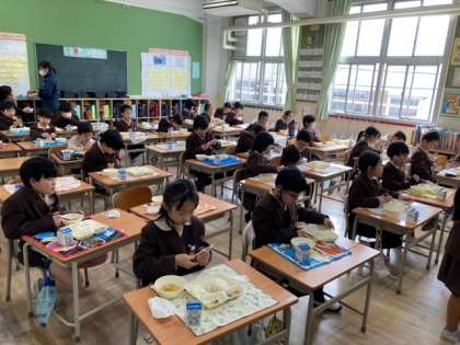 1年生は、給食の準備・片付けが早くなり、食べる量も増えてきました。