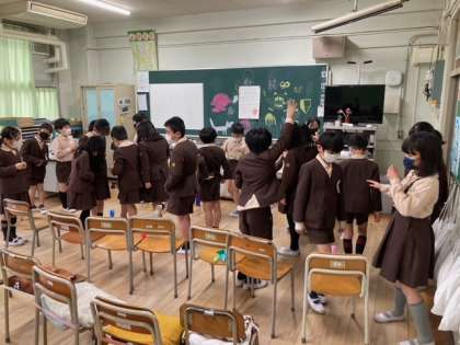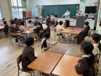今日は、久しぶりの雨です。明日で今の学年・学級ともお別れです。楽しい思い出となるように「お楽しみ会」を行った学級がありました。