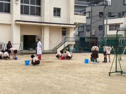 6年生の理科は「物がもえるしくみ」で早速、実験をしました。班で協力して進めていました。
