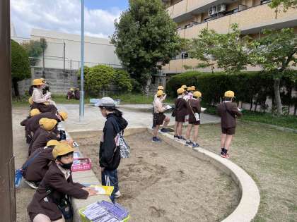 4年生は理科の学習で春の生き物を探しに野里西公園へ行きました。少し肌寒かったですが、虫や花などの生き物を見つけ、楽しく学習しました。これからも四季折々の自然の変化に興味・関心を持って過ごしてほしいなと思います。