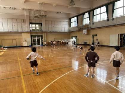昼休み、講堂で3年生がドッジボールなど、楽しそうに遊んでいます。