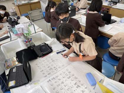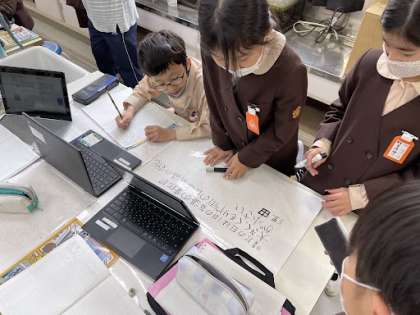 4年1組は理科で、1日の気温の変化のちがいについて班でまとめを考えました。