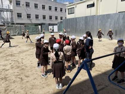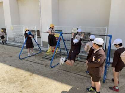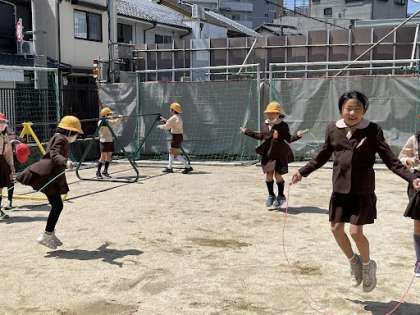 四年生が元気になわとびや鬼ごっこなどをしています。
