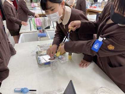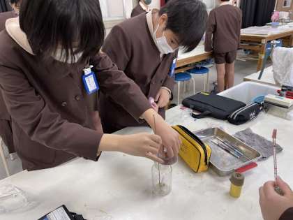 「ものが燃えた後の空気はどのように変化するのか」を実験を通して調べています。