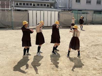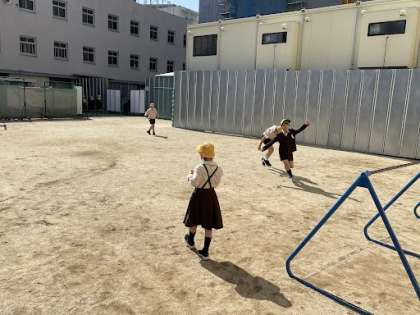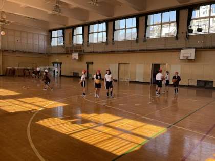 休み時間、6年生は講堂で元気にボール運動をしています。