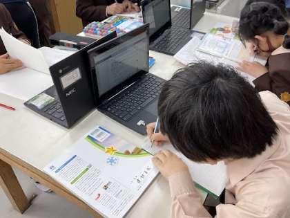 4年生は単元のまとめの学習をパソコンを使って取り組んでいます。