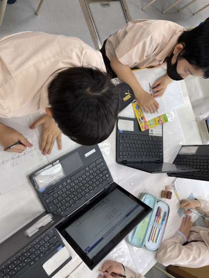 5年生は金曜日のテストに向けて、パソコンを使い復習しました。
