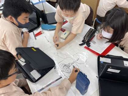 6年生は、「食べ物が口の中で消化されたあと、どのよう体の中でさらに消化・吸収されるのか」について考えました。