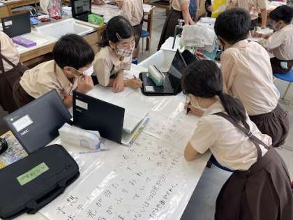 4年生の理科では「運動場の水たまりになっている場所と水がなくなってしまっている場所のちがい」について考えました。