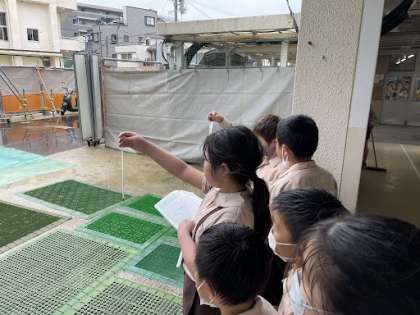 四年生は休み時間に「雨の日の気温の変化」について、温度計を使い調べていました!1時間おきに変化を調べます。「晴れの日」との違いをよく考えましょう!!