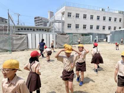 15分休み、四年生が運動場で「けいどろ」や鉄棒をしています!全力では走れないのでスキップでしていますね!!