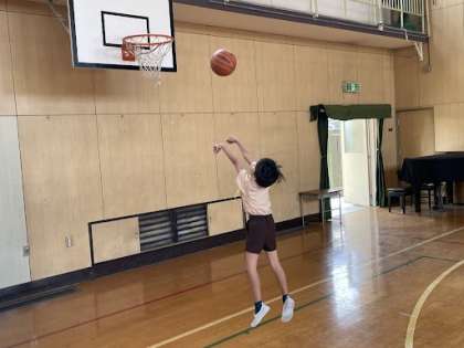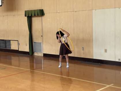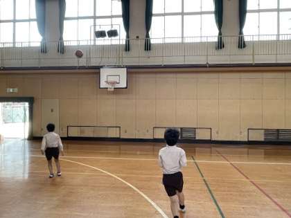 3年生は、休み時間に講堂で「バスケットボール」を使ってシュートをしたり、「フラフープ」で遊んだりしていました!