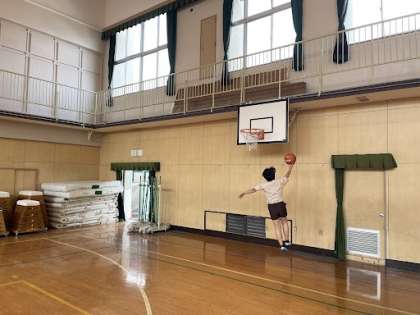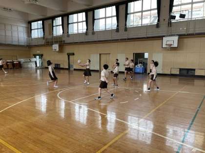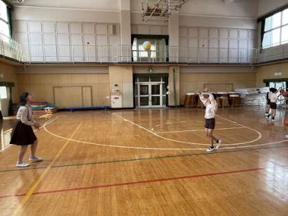 昼休み、6年生が講堂で「バスケットボール」や「バレーボール」を使って楽しそうに遊んでいます!