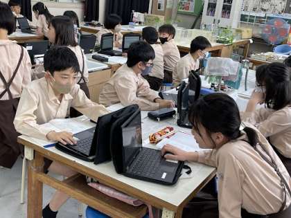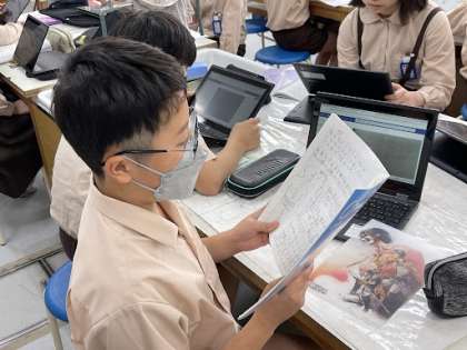 発表者以外は、パソコンの画面に映っているPowerPointやノートの写真を見ながら聞いています。
