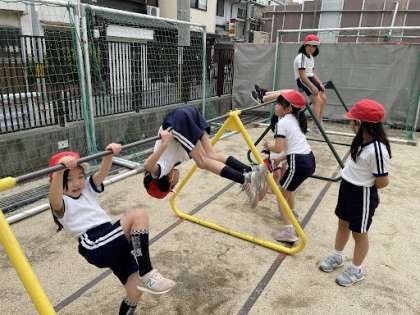 休み時間、3年生が鉄棒で遊んでいます!