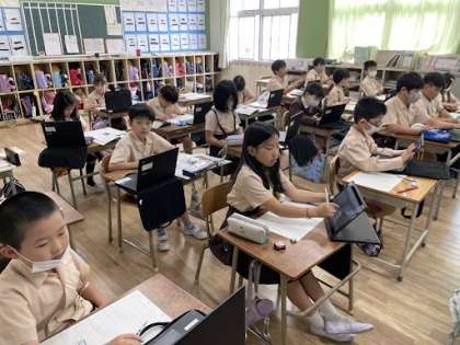 3年生は国語の時間に「自然の中の保護色」について、いろいろな動物を調べ、分かったことをまとめていました!インターネットを使い情報をあつめています!